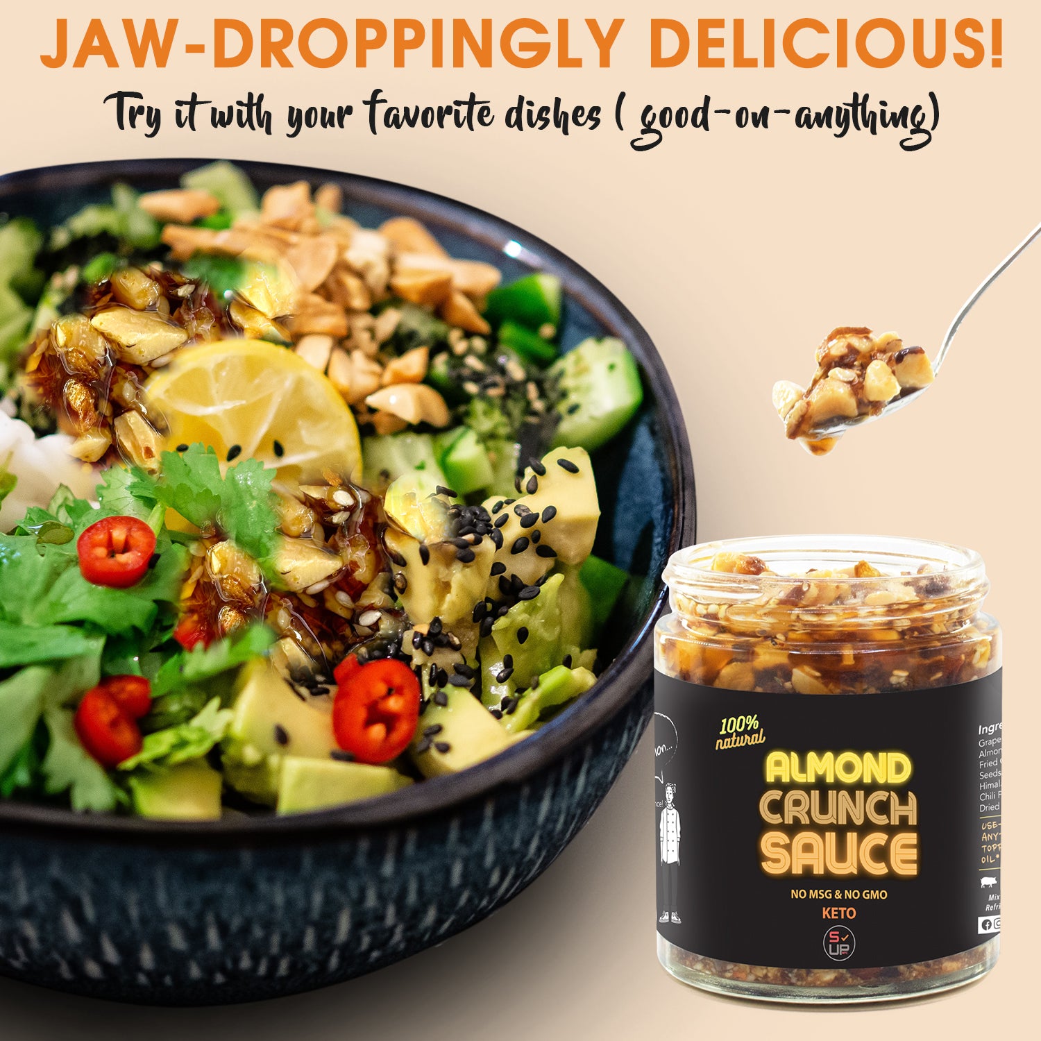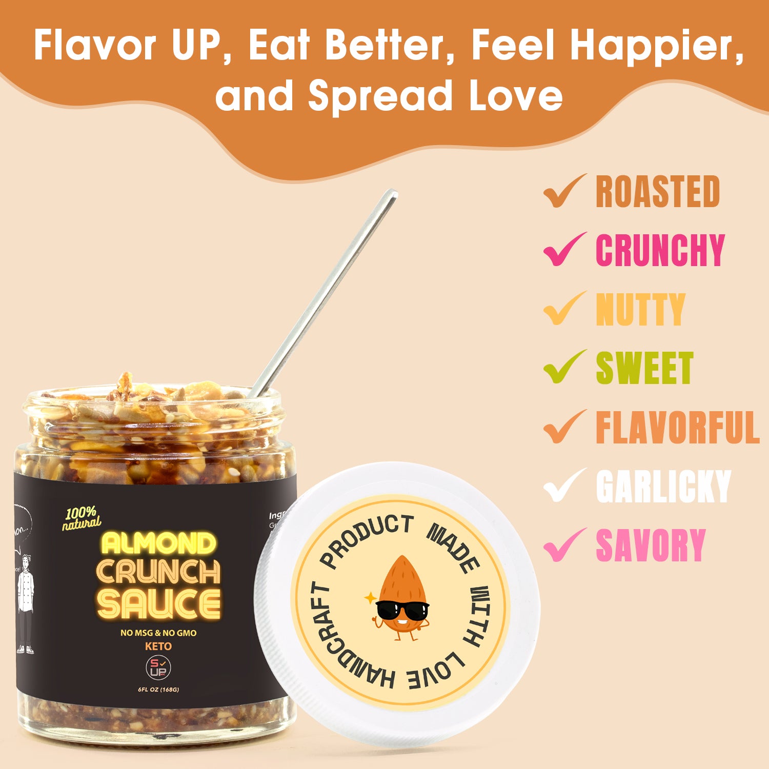 Grapeseed Oil, Roasted Almonds, Fried Onion, Fried Garlic, Organic Coconut Palm Sugar, Himalayan Salt, Korean Chili Flakes, Chili Flakes, Dried Thyme