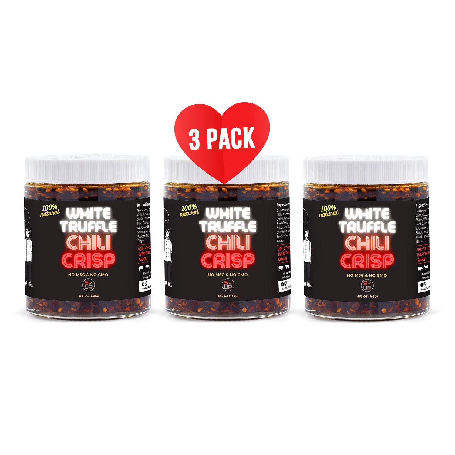 Crafted with an award-winning combination of chili crisp and white truffle, this set of 3 sauces delivers bold flavor with a hint of umami. A perfect topping for your favorite dishes, each bite packs a unique blend of heat, sweetness, and intense aroma.