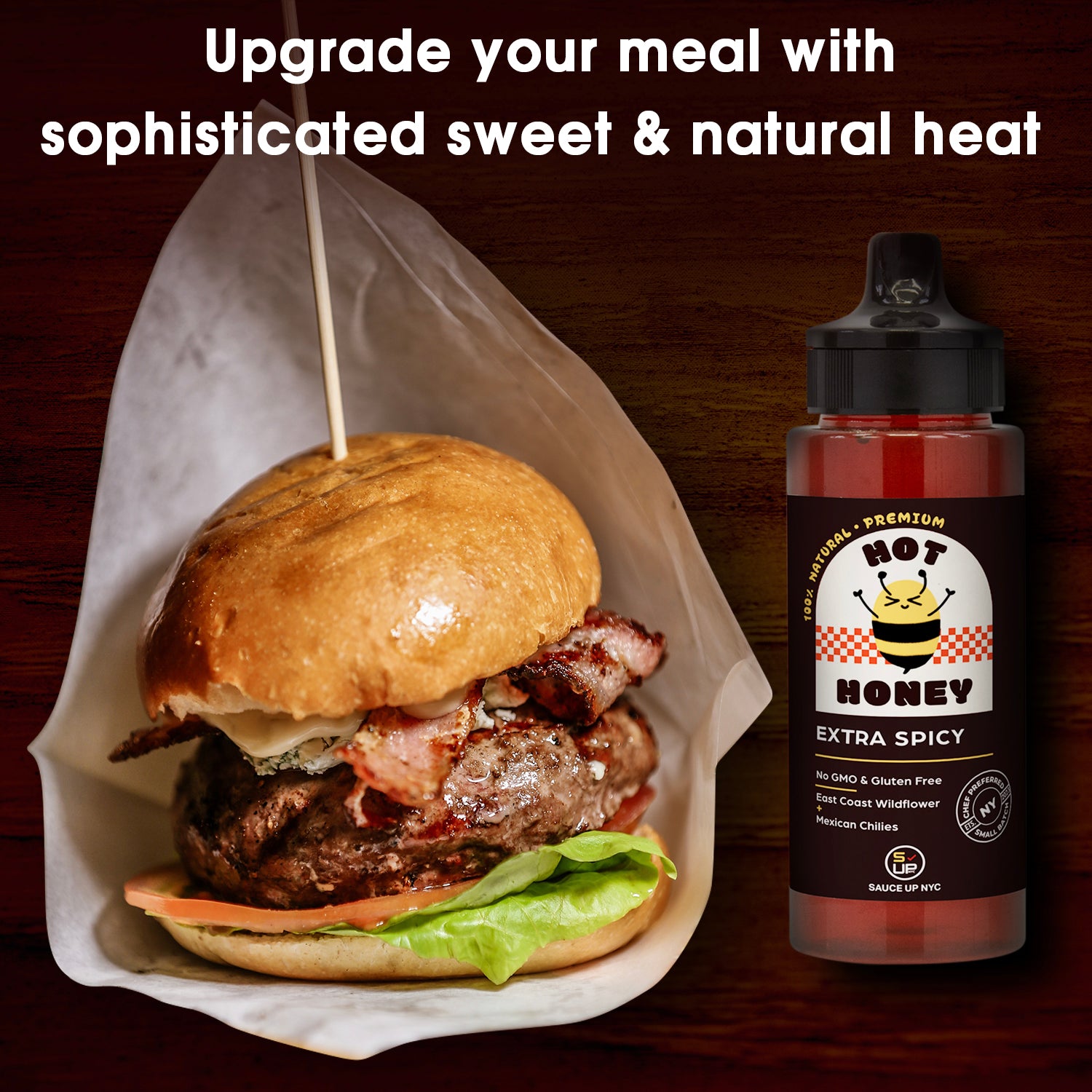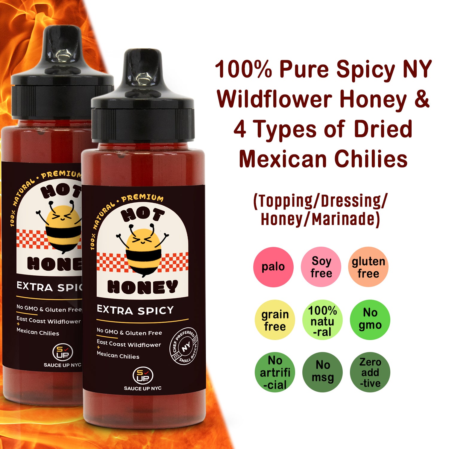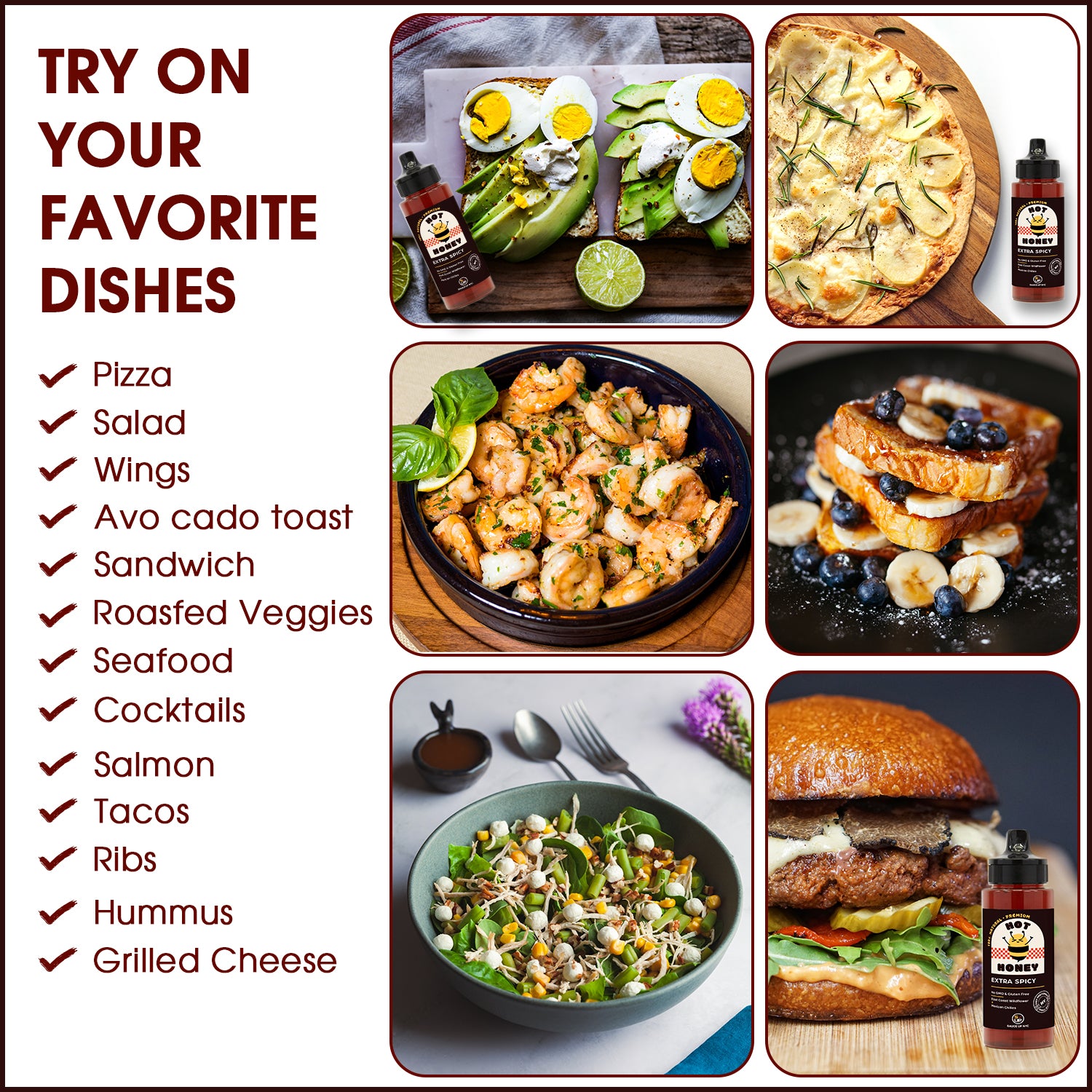 Immerse yourself in a sensory delight with our expertly crafted hot honey - a symphony of flavors and heat sure will elevate your dishes to the next level!